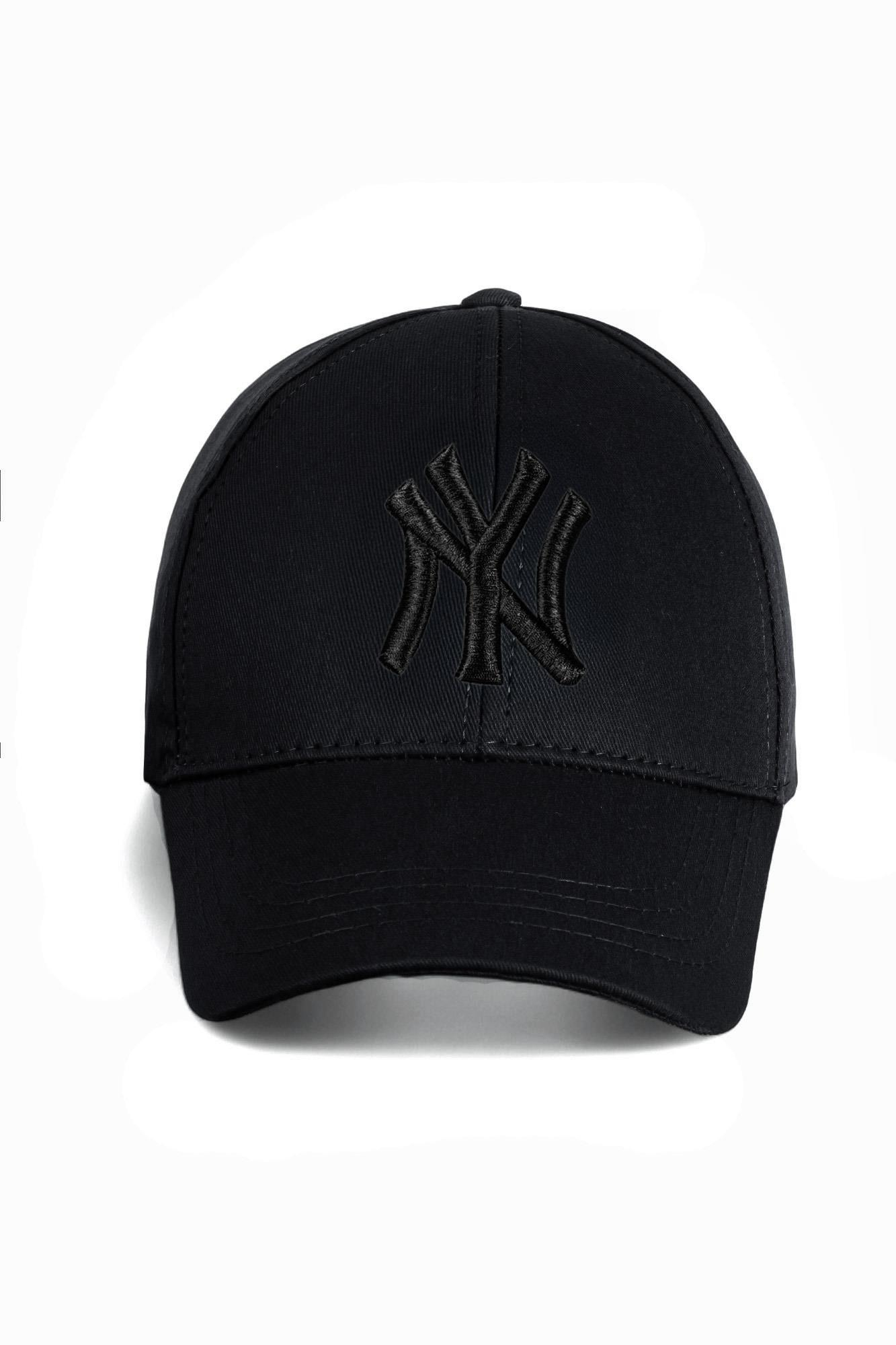 Unisex Siyah Renk Siyah Logo Beyzbol Ny Nakışlı Şapka